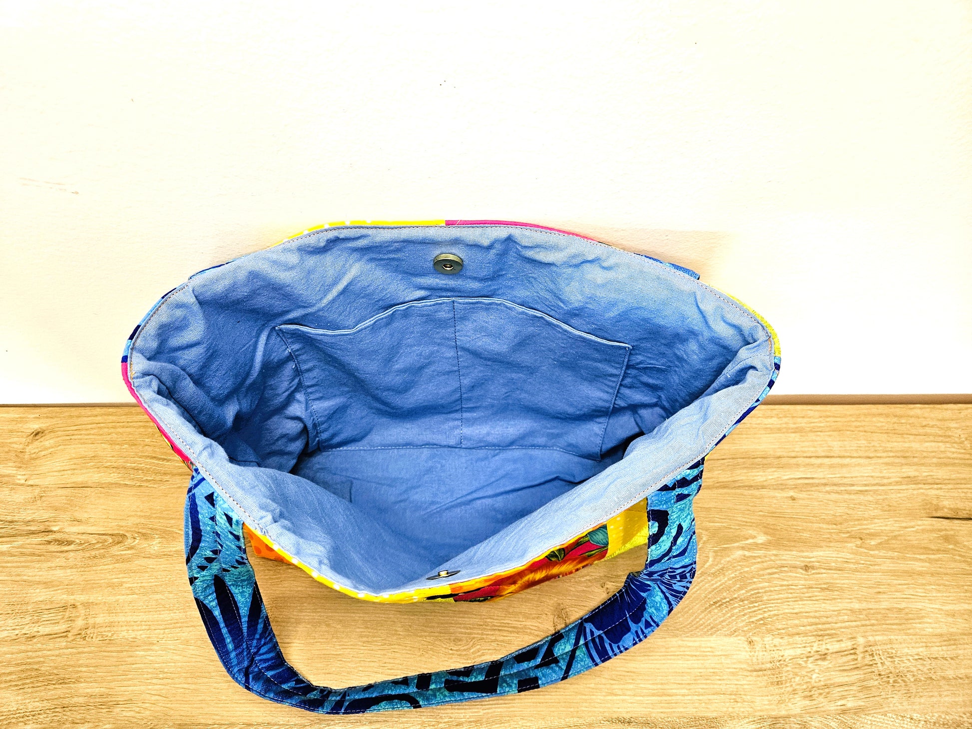 Chaque sac est unique, entièrement doublé et molletonné pour plus de confort et de tenue. Les anses sont également molletonnées.