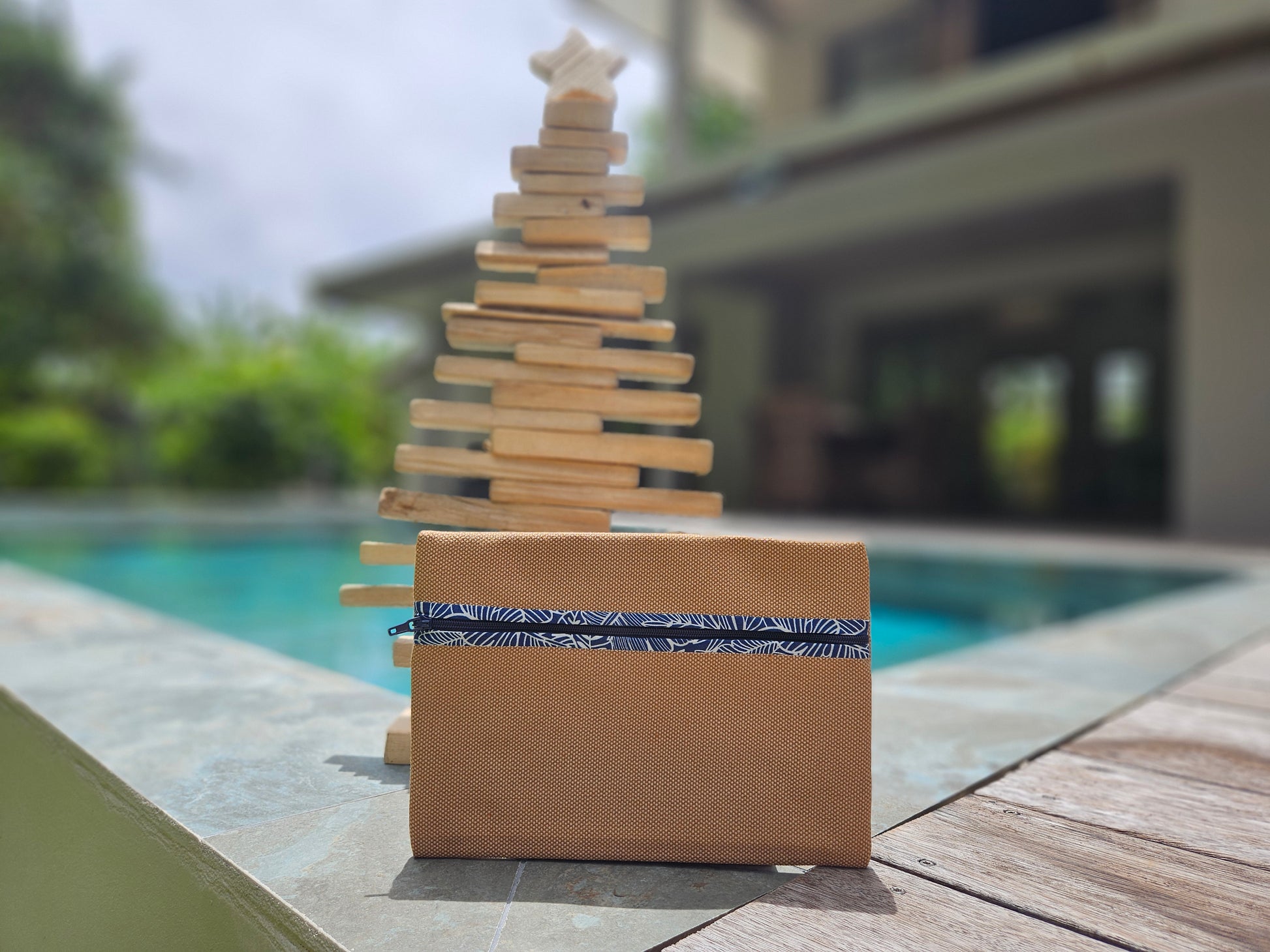 Elégante, avec son tissu extérieur bien épais et sa touche tahitienne colorée, elle est entièrement doublée. Elle se ferme avec un zip coulissant.